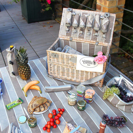 Les Jardins de la Comtesse ont conçus pour vous et votre entourage, des grands paniers pique-niques 6 personnes de haute qualité. Que ce soit pour les grands repas de famille ou pour des repas entre amis, votre panier ne pourra que vous satisfaire de par son design mais surtout pour sa praticité. Que ce soit en forêt, à la plage ou dans un parc, votre panier pique-nique 6 personnes vous sera très utile pour transporter votre nourriture.