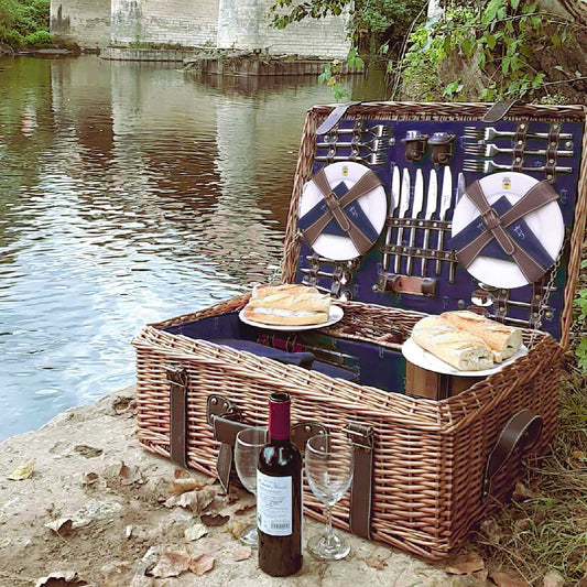 - Le panier pique-nique Trianon. Ce panier chic et sobre se fondra parfaitement dans un décor traditionnel. Idéal pour partager un bon pique-nique à deux, entre amis ou en famille.