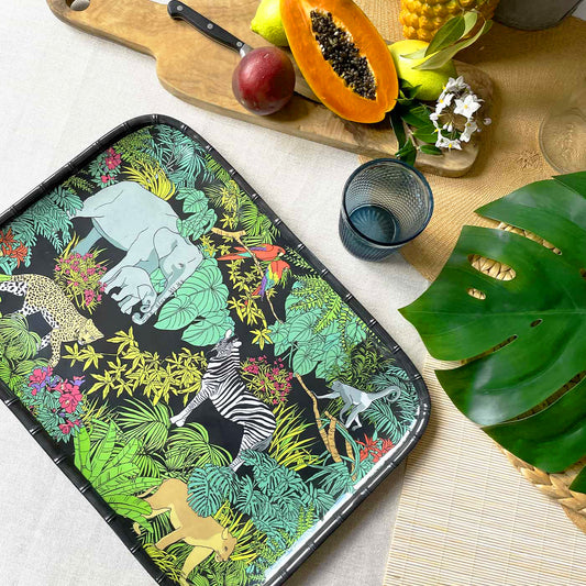 Plateau rectangulaire à coins arrondis en mélamine noire - 45 cmJUNGLE- Plateau de présentation avec une jolie jungle- Plat en pure mélamine extrêmement résistant- 45 cm x 32 cmPlateau rectangulaire à coins arrondis en mélamine noire - 45 cmJUNGLE- Plateau de présentation avec une jolie jungle- Plat en pure mélamine extrêmement résistant- 45 cm x 32 cmPrix habituel 29,90€Prix habituelPrix unitaire / parPrix promotionnel 29,90€ -