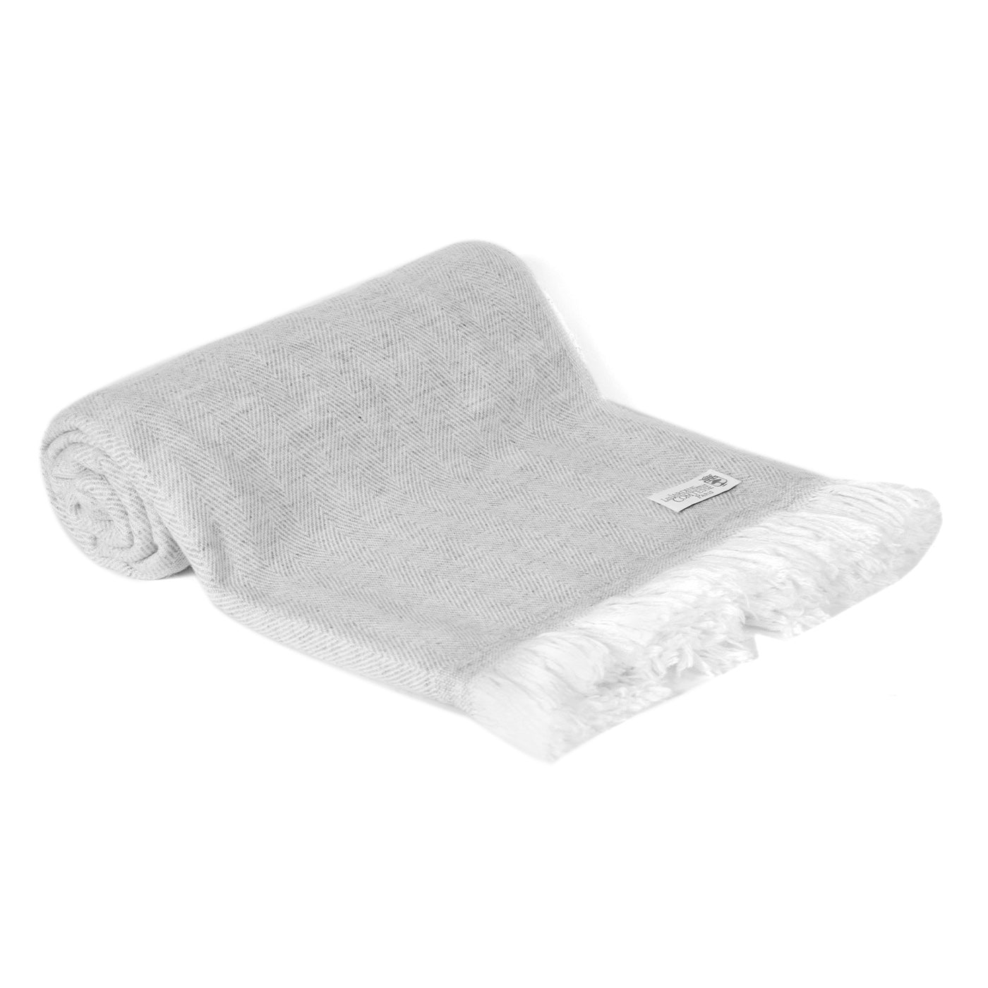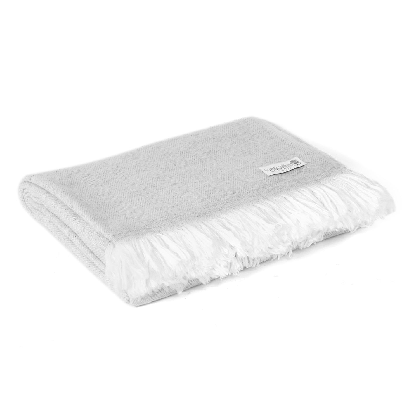 Plaid cachemire et laine Gris Argenté - Grands chevrons - 130 x 230 cm